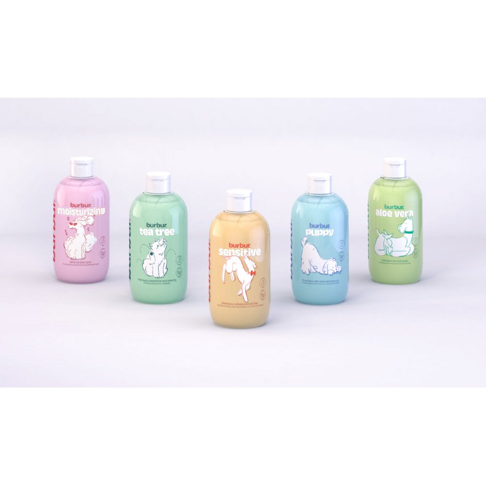 Sampon Burbur cu aloe veraSampon cu Aloe Vera pentru toate tipurile de par, cu extract de aloe vera ecologica , biotina si provitamine B5, ingrijeste si protejeaza pielea si parul, oferindu-le putere si stralucire.INSTRUCTIUNI DE UTILIZARE: Udati bine blana cu apa calduta. Aplicați șamponul începând cu picioarele, apoi spate și gât. Masați energic până obțineți o spumă bogată, cremoasă. Se lasa sa actioneze 1 sau 2 minute, se clateste cu apa din abundenta si se usuca cu un prosop. Îndepărtați urmele de apa cu un uscător de păr în timp ce periati.Gama Burburveganacontine ingrediente naturalefara parabenipH neutrupotrivit pentru caini si pisicicalitate premiumBurbur este un nou brand pentru animalele de companie care se naște în spiritul de a fi distractiv și diferit.Scopul? Crearea unui brand, a unui ambalaj și a unei strategii de comunicare care să permită lui Burbur să intre în legătură cu consumatorul pentru a-și susține decizia de a cumpăra și care s-i permită să concureze încă de la început cu marile mărci care sunt deja pe piata în lumea animalelor de companie. Rezultatul este un branding și o grafică coordonată, proaspătă și plină de viață, concepută pentru a funcționa perfect. Ca o primă implementare a graficii, s-a creat o linie de șampoane pentru câini și pisici, unul dintre cele mai consumate produse pentru cei care au prieteni canini și feline. Scopul a fost să creăm o gamă care să atragă atenția și să facă diferența când vine vorba de calitate.