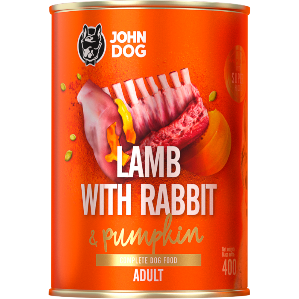John Dog conserva pentru caini Miel cu Iepure si dovleac- Adult 400gr