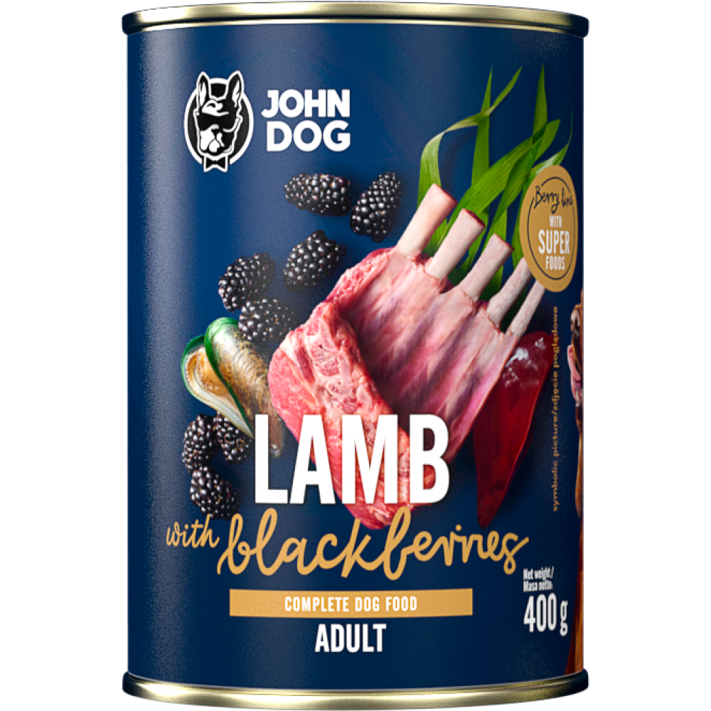 John Dog conserva pentru caini Miel cu mure - Adult 800gr