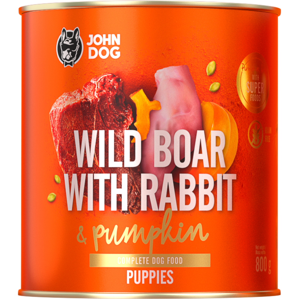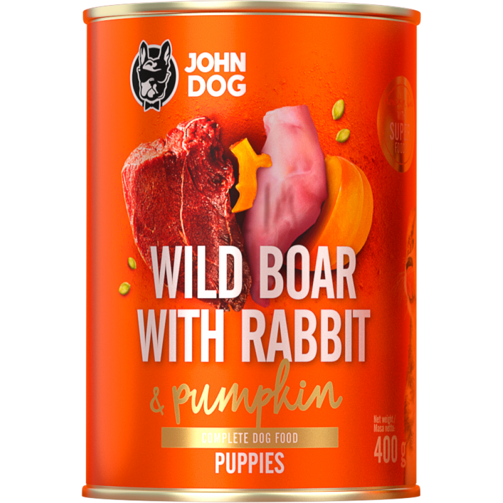 John Dog conserva pentru caini Mistret cu Iepure si dovleac - Puppy 400gr