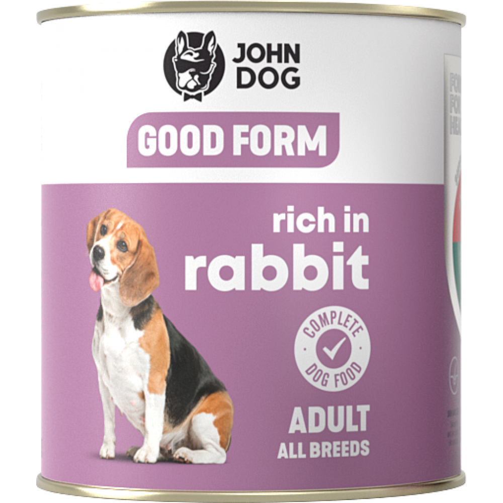 John Dog Good Form conserva pentru caini Adult cu Iepure 800gr