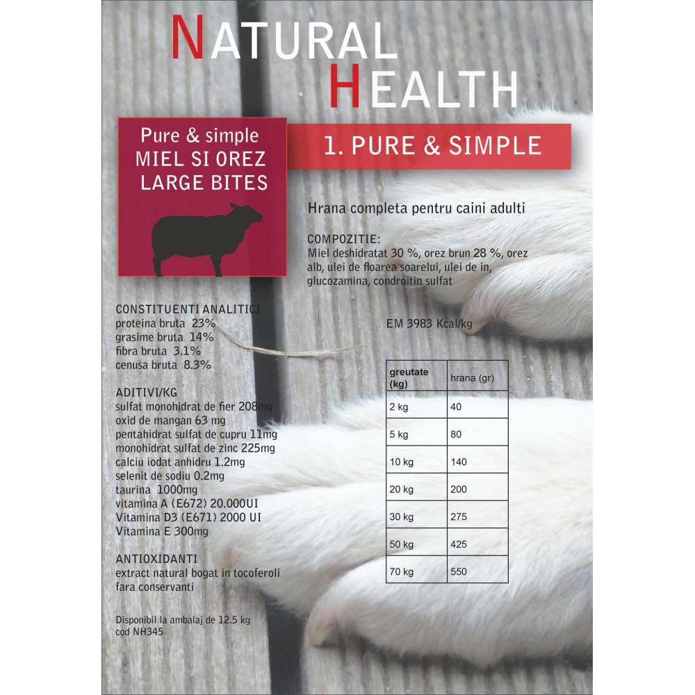 Natural Health Hrana uscata pentru caini talie mare cu miel si orez 2 kg