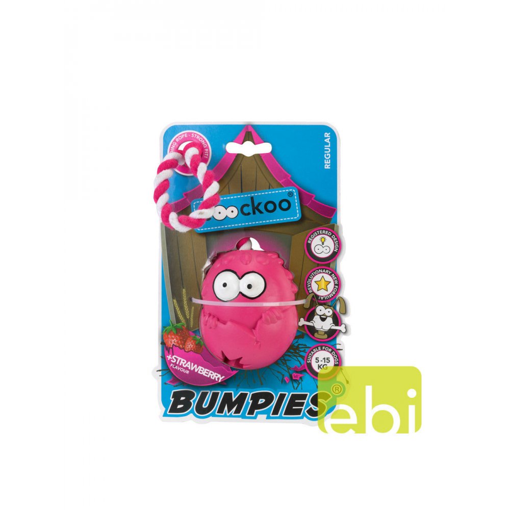 Jucarie pentru caini Coockoo Bumpies cu sfoara- aroma de capsuni XL >27kg