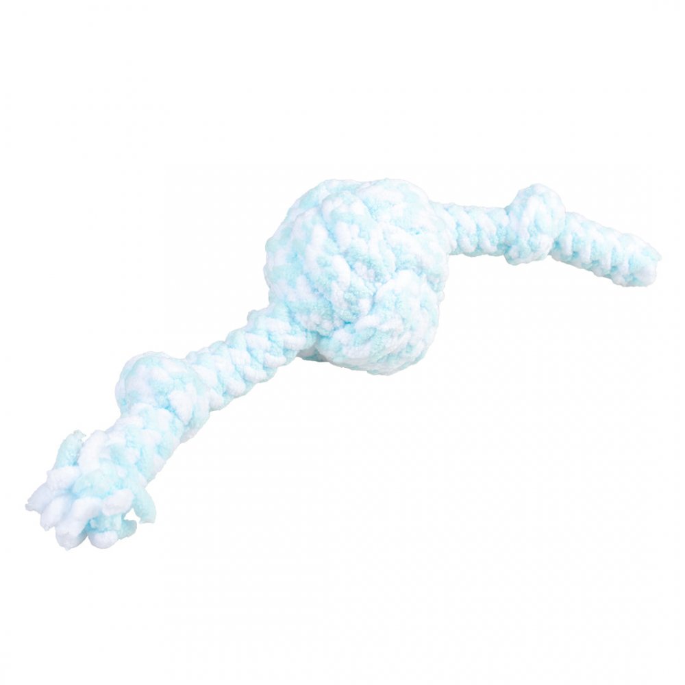 Jucarie sfoara pentru catei 2 noduri albastru/alb 30x7.5x7.5 cm