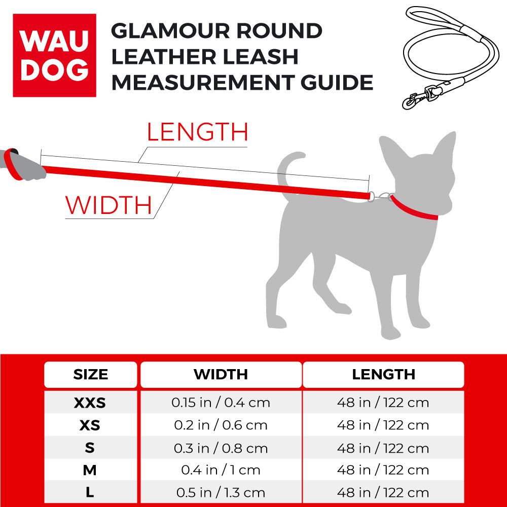 Lesa piele rotunjita pentru caini WAUDOG Glamour - Portocaliu XXS - 4mm/ 183cm