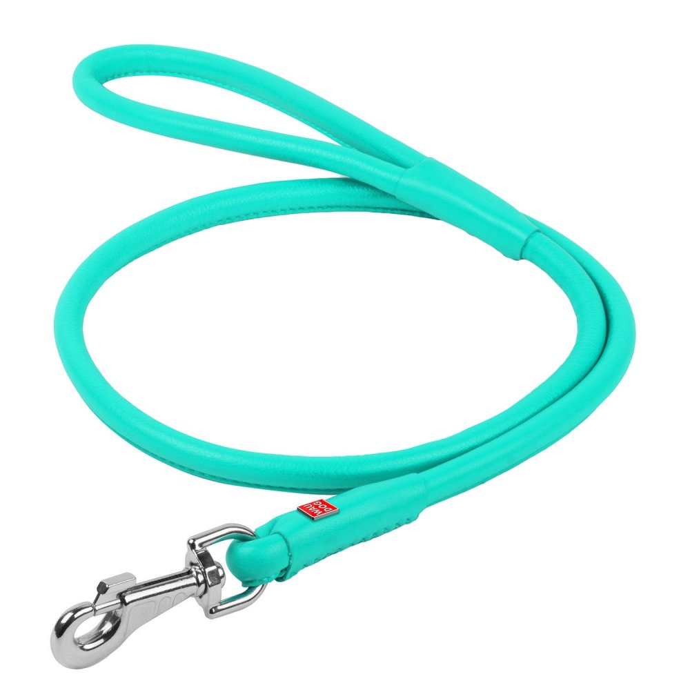 Lesa piele rotunjita pentru caini WAUDOG Glamour - Turcoaz XXS - 4mm/ 183cm