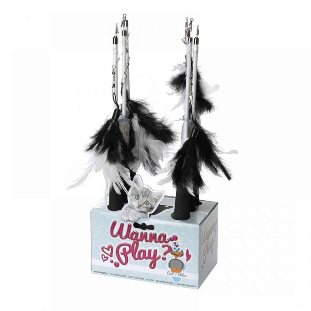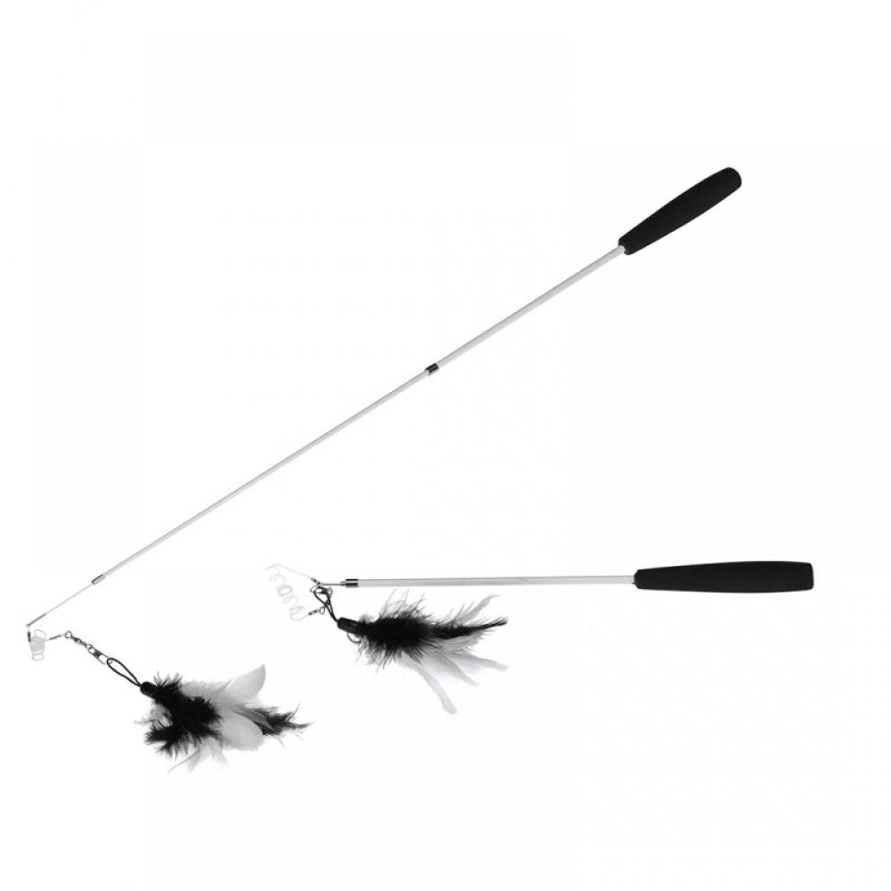 Jucarie pisici cu telescop si pana 35-95cm alb/negru