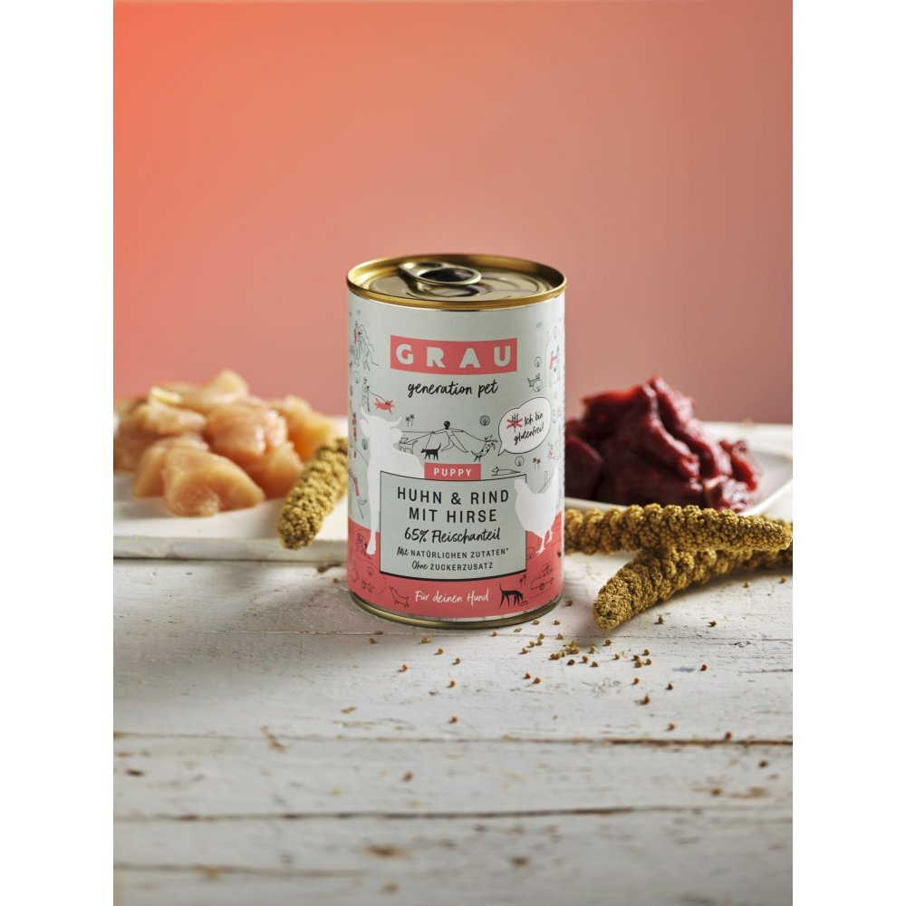 Grau Conserva Puppy cu carne de pasare-vita-mei 400 g