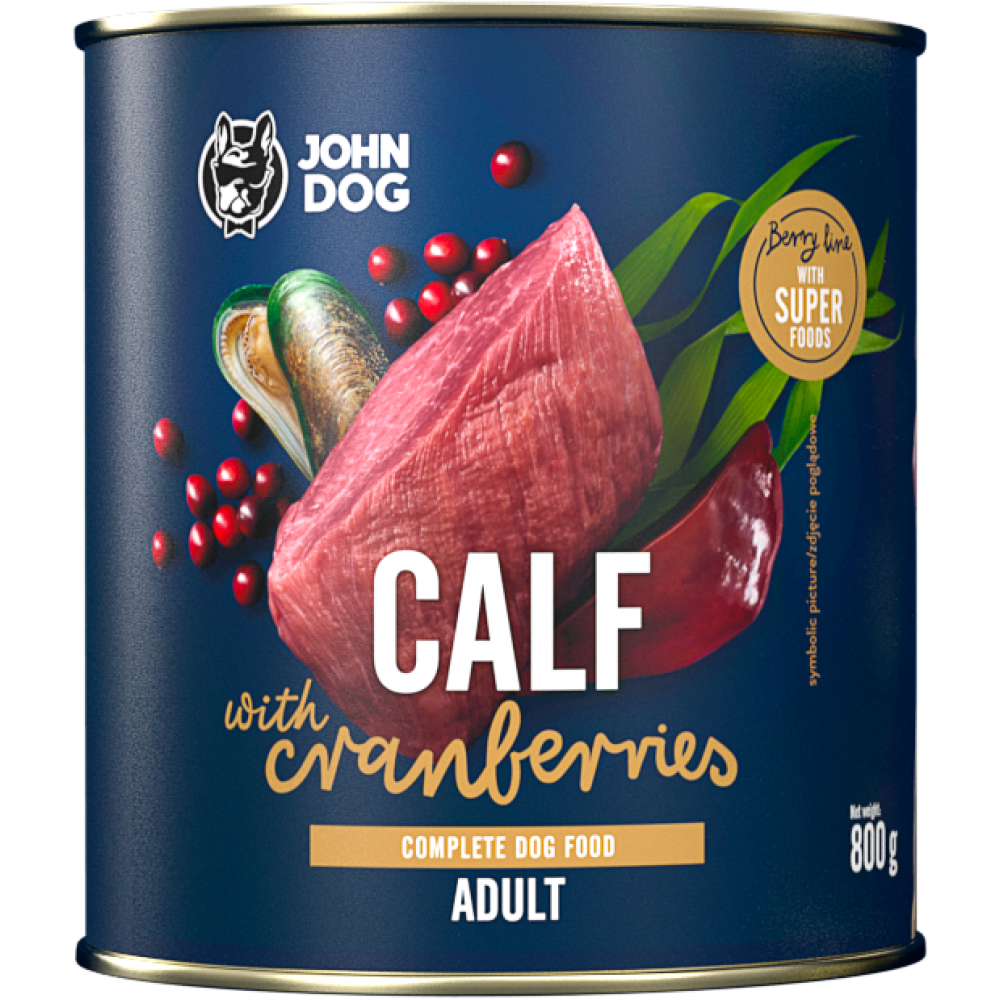 John Dog conserva pentru caini Vitel si merisoare Adult 800gr
