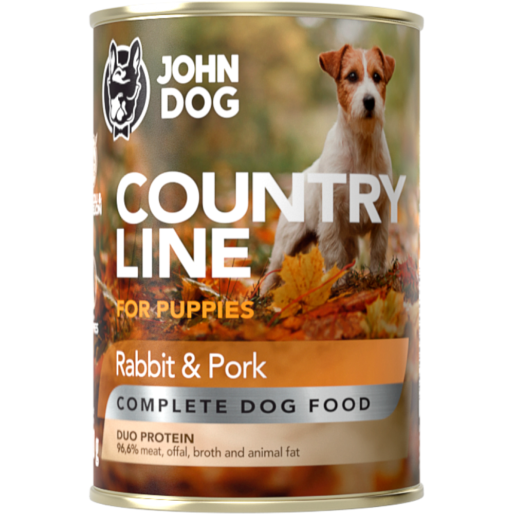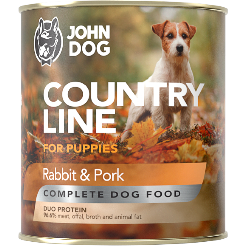 John Dog Country line conserva pentru caini Puppy - Iepure si Porc 800gr