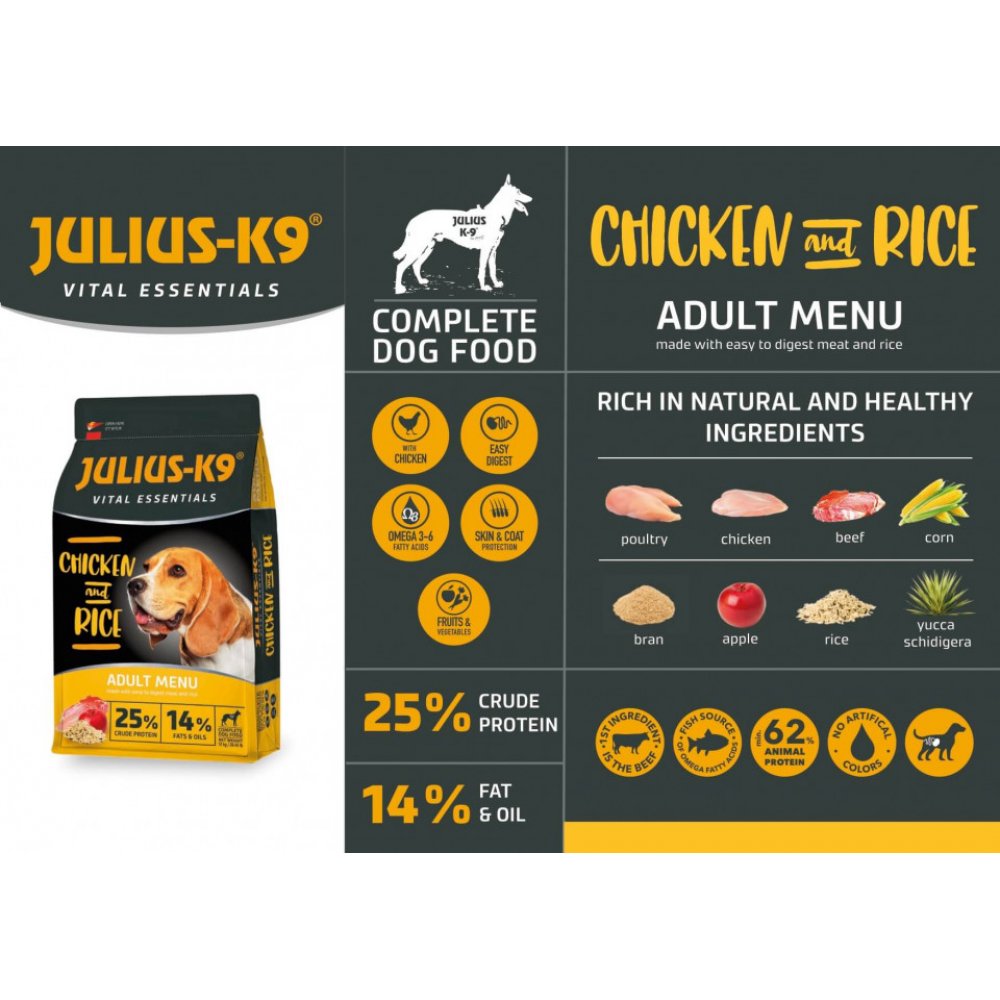 Julius K9 Adult Vital Essentials - Hrana Uscata Premium - Pasari De Curte Si Orez - 12kg