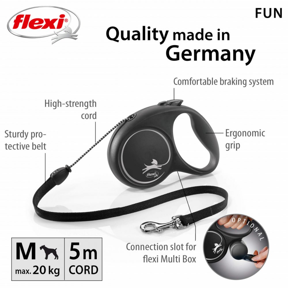 Lesa Retractabila, Cu Fir - Flexi Fun - M - Negru