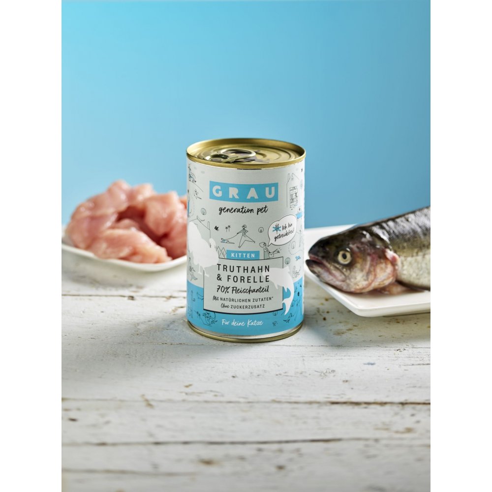 Grau Conserva pentru pisoi cu carne de pastrav si curcan 200 g